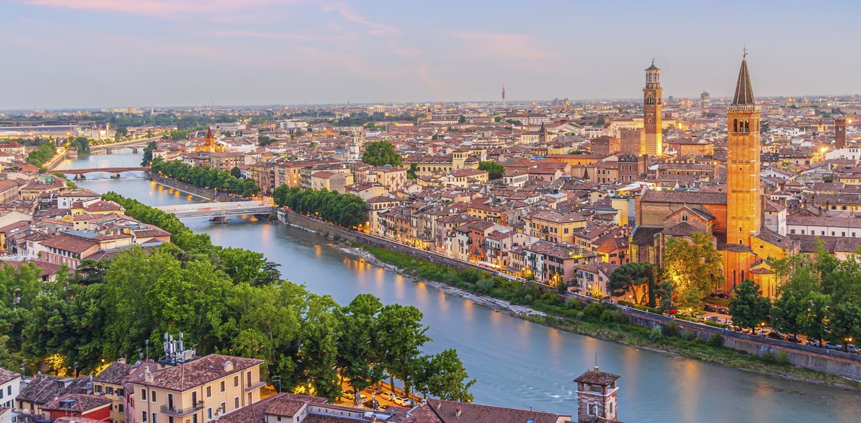 Верона — місто на північному сході Італії, розміщене біля підніжжя Альп, на обох берегах річки Адідже. Верона зберегла й поєднала мистецькі елементи різних історичних діб, що змінювали одна одну, а також яскраво передає концепцію фортифікованого європейського міста. Тут знаходиться відома каплиця св. Франциска Ассизького. Також побачимо величний Катедральний собор, Базиліку св. Анастасії та інші святині цього “романтичного міста” Європи, також відомого історією Ромео та Джульєтти.